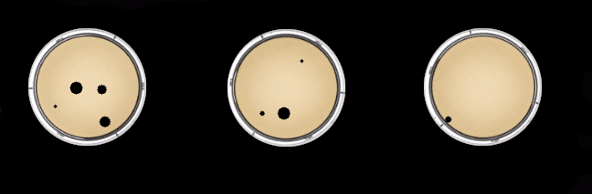 Then we decided to apply CycleGAN for the task. We constructed two sets. The first set was created by drawing black dots on images of empty Petri dishes. The other one contained real images of bacteria and fungi in Petri dishes. We hoped to transform dots into real looking organisms.