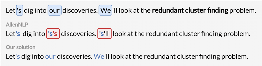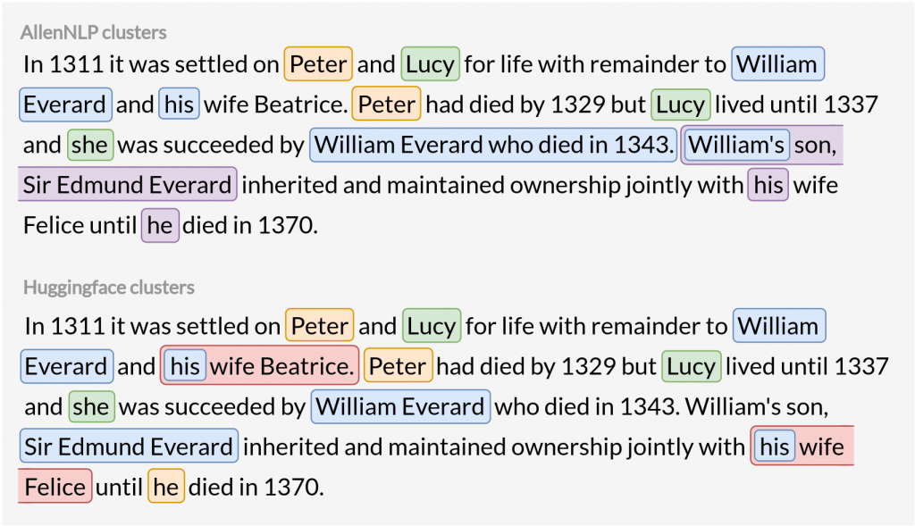What’s more, in addition to AllenNLP acquiring a higher number of valid clusters compared to Huggingface, we’ve also found the former to be much easier to modify.