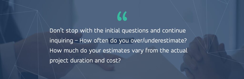 Don’t stop with the initial questions and continue inquiring – How often do you over/underestimate? How much do your estimates vary from the actual project duration and cost?