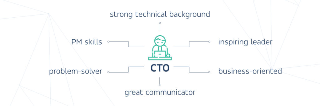 A skilled remote chief technology officer combines technical expertise and great communication/leadership skills. They take responsibility for the organization’s technological issues and oversee a development budget. That’s why finding one is not as easy as pie (quite the opposite in fact). If you need an experienced remote CTO on demand – we’ll be happy to help. Just drop us a line!