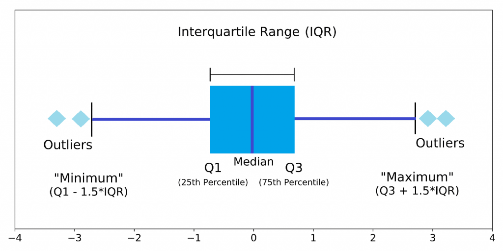 “Minimum” and “maximum” values are defined in the following way. First, the interquartile range is calculated:
