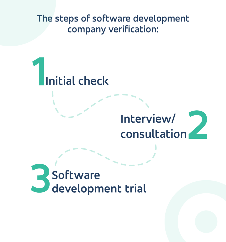 - An initial check. You’re rooting around companies on the market, searching Google, checking development company rankings, reviews, technologies they excel at, and scanning the firm and its team (among others case studies, clients, and LinkedIn profiles).