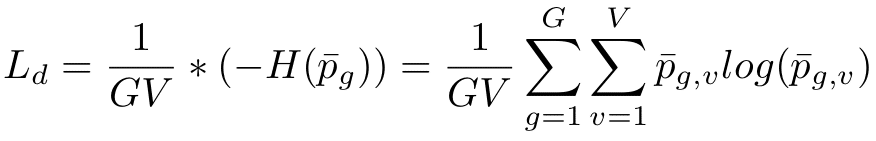 Entropy assumes the maximum value when the data distribution is uniform. In our case, it means that all of the code words are used with the same frequency. With this, we can calculate the entropy of every codebook over the whole batch of training examples to check if the code words are used with the same frequency. Maximization of this entropy will encourage the model to take advantage of all code words. The maximization equals minimization of negative entropy which is the diversity loss.