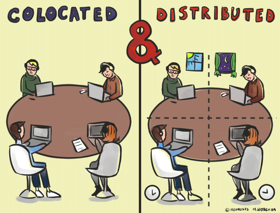 There is a widely spread misperception that Scrum doesn’t work for distributed teams. Indeed, personal interaction is important in Scrum, but thanks to all the telecommunication tools available nowadays, the distance is not a hazard anymore.