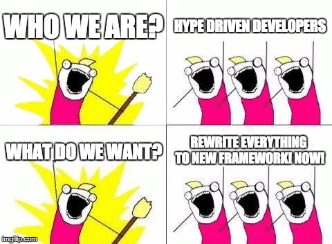 Developers have a craving for new technologies (read more about it here). Often being blinded with Hype Driven Development syndrome they opt for rewriting just to try the trendy tech stack, tools.